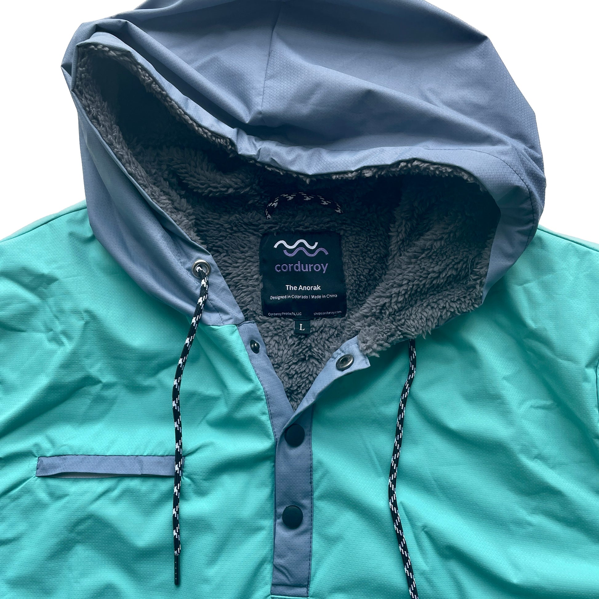 It is our great pleasure to introduce The Anorak: a fully lined, water-resistant hoodie that will turn heads wherever you go. The interior was designed for optimum comfort and coziness, and based on the feedback from our customers, we think we nailed it. This cozy interior is shielded by a tough, DWR-coated polyester shell that offers rugged protection against the elements. With a unique drop-cut style and ample pockets for your gear, The Anorak is the perfect companion for camping, après, skiing, hanging at the crag, outdoor concerts, or even just bopping around town! The possibilities are endless. And with two distinct colorways that really pop, they are as awesome as you are!